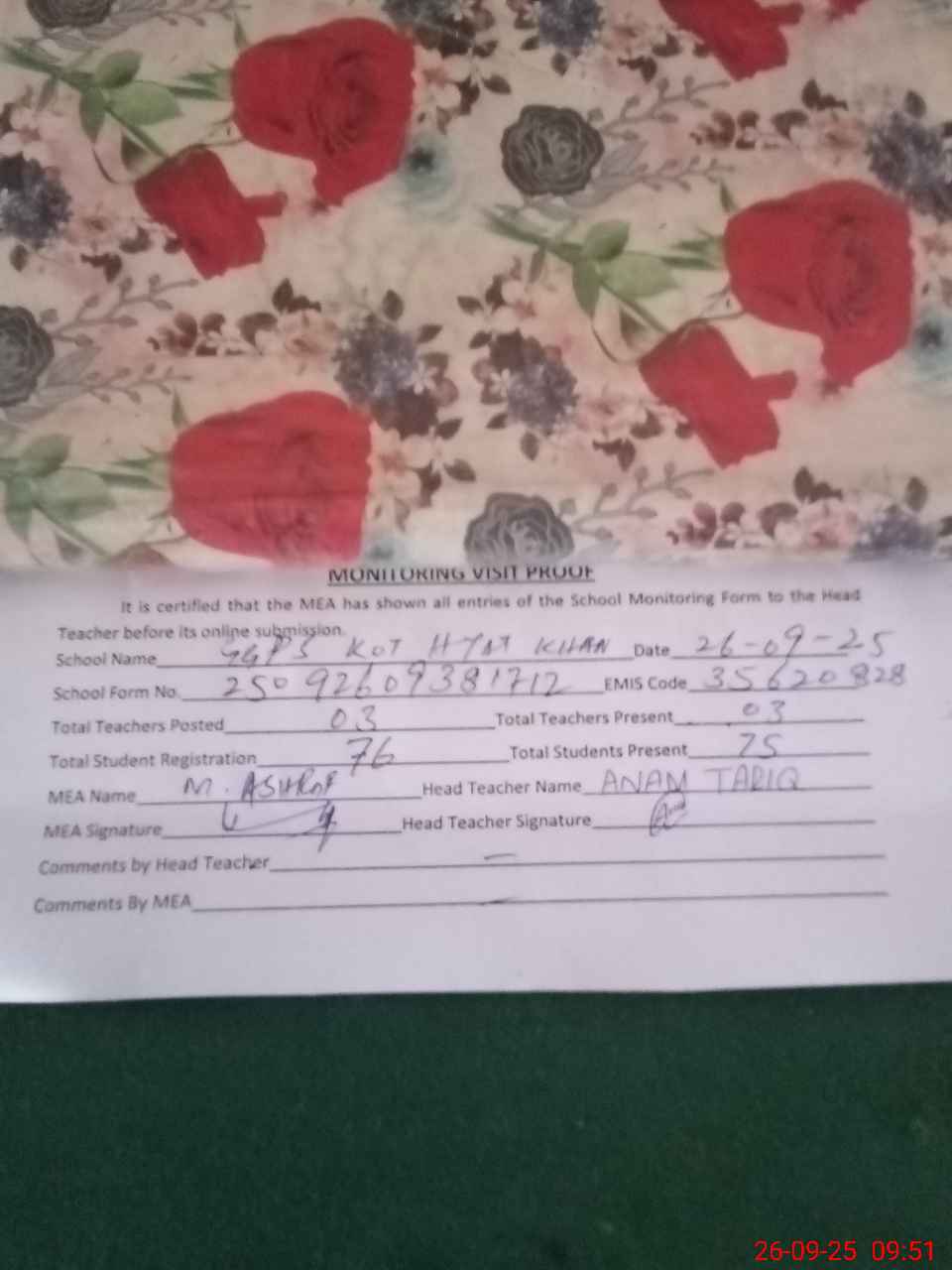 | EMIS Code: 35620828 | Name of School: GGPS KOT HAYAT KHAN | |||