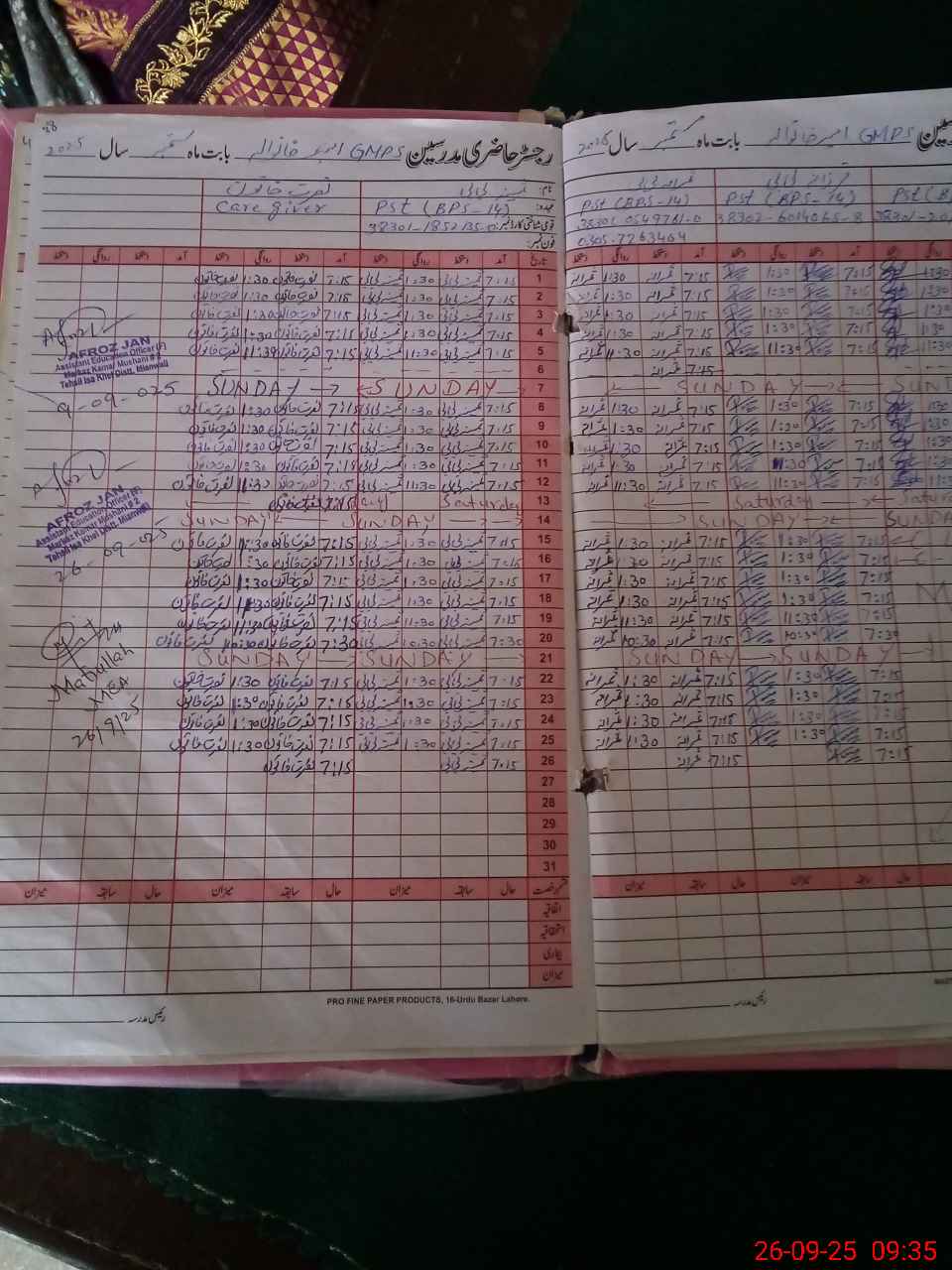 | Name: Sa**** No**** Designation: (School Headmaster's/Headmistress's) ESE Phone/Cell Number: 03**** |