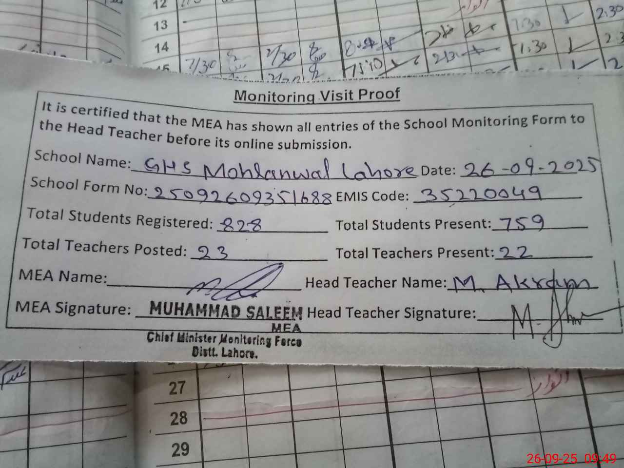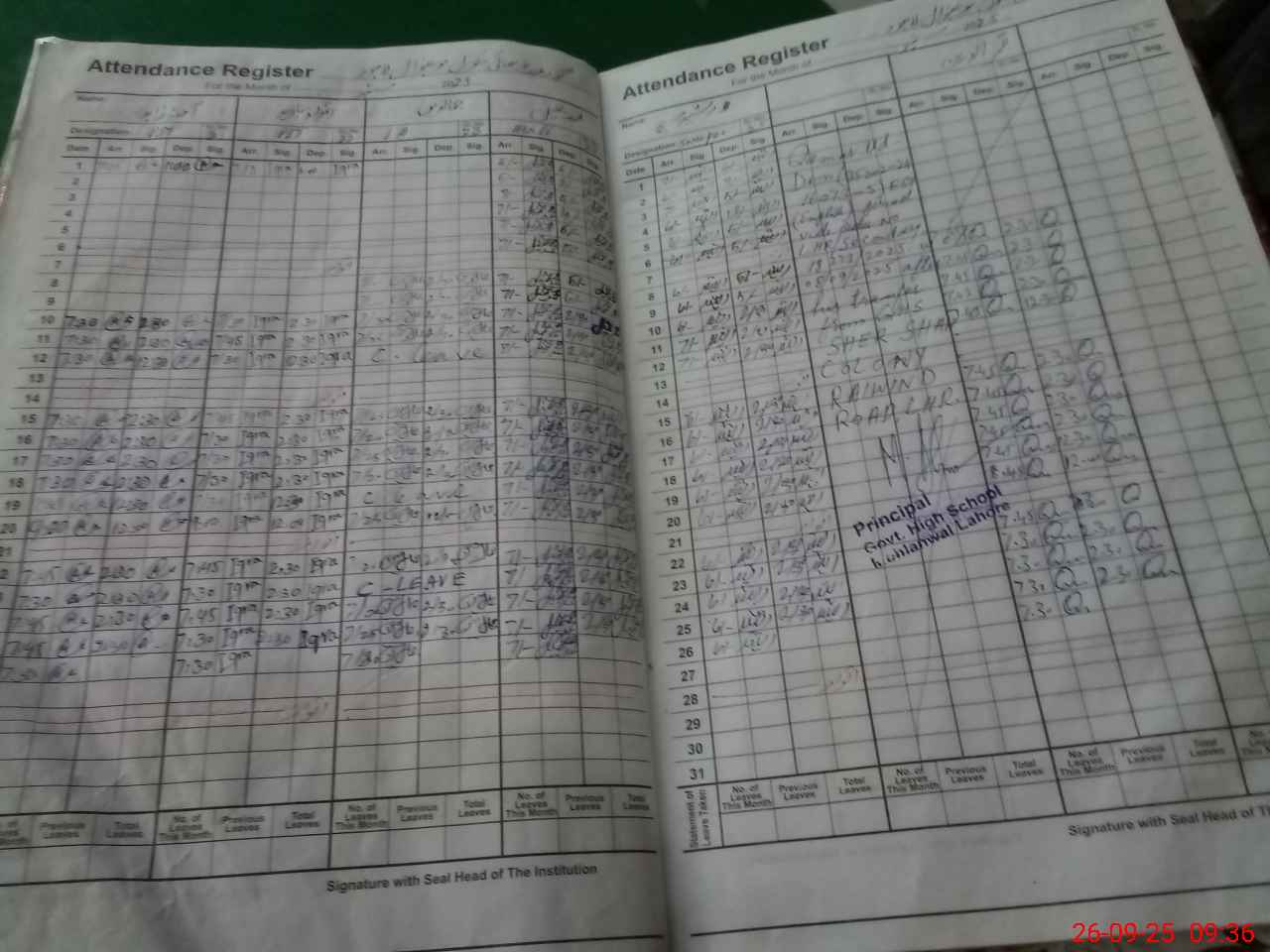 | Remarks (Use Separate Page if Required): EST teacher Sharafat Ali is on ExPak leave wef 23rd September 2025 but not found any approval so marked him absent as per SOP Some windows required repair work There is difference of fifteen students required to be added in SIS process is in progress due to current flood issue it is slow 35220049 | |||||