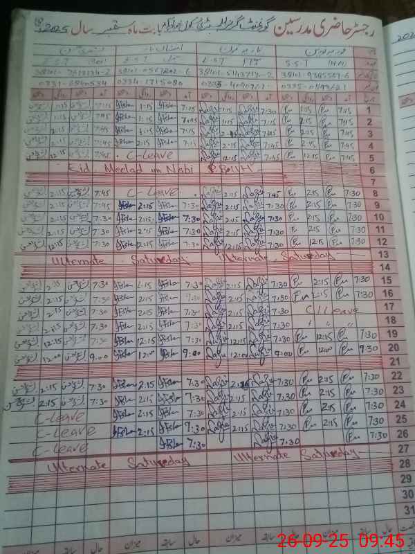 | CNIC | Full Name | Designation | R/C | Absence During Last Calender Month |