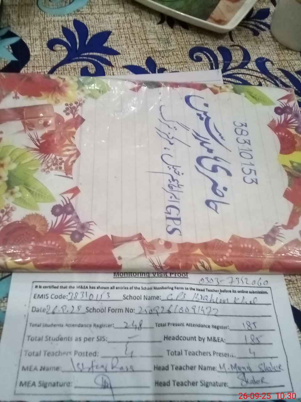 | Attendance Register | Head Teacher | MEA with School | Visit Proof |