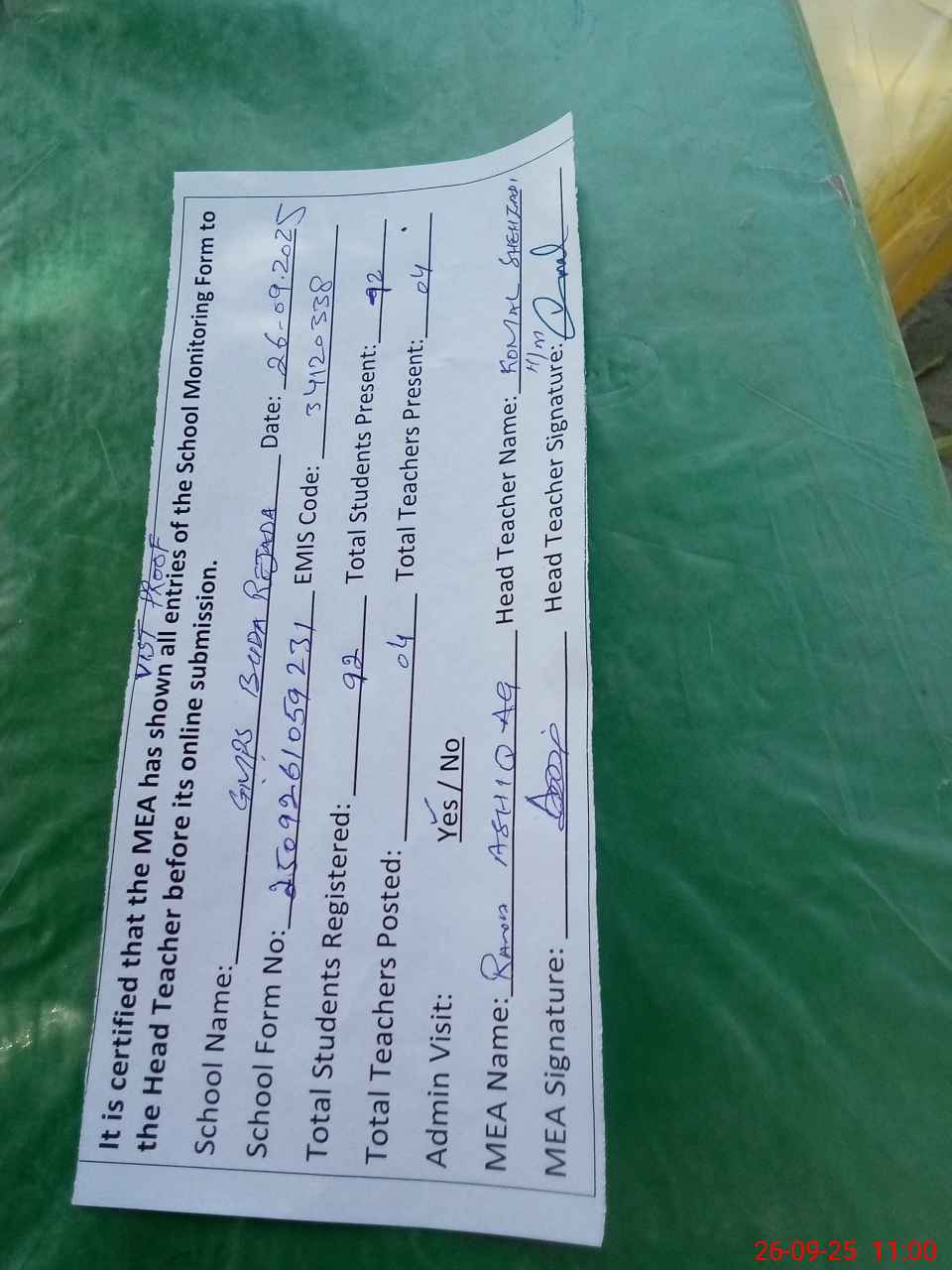 | EMIS Code: 34120338 | Name of School: GMPS BUDHA RAJADA | |||