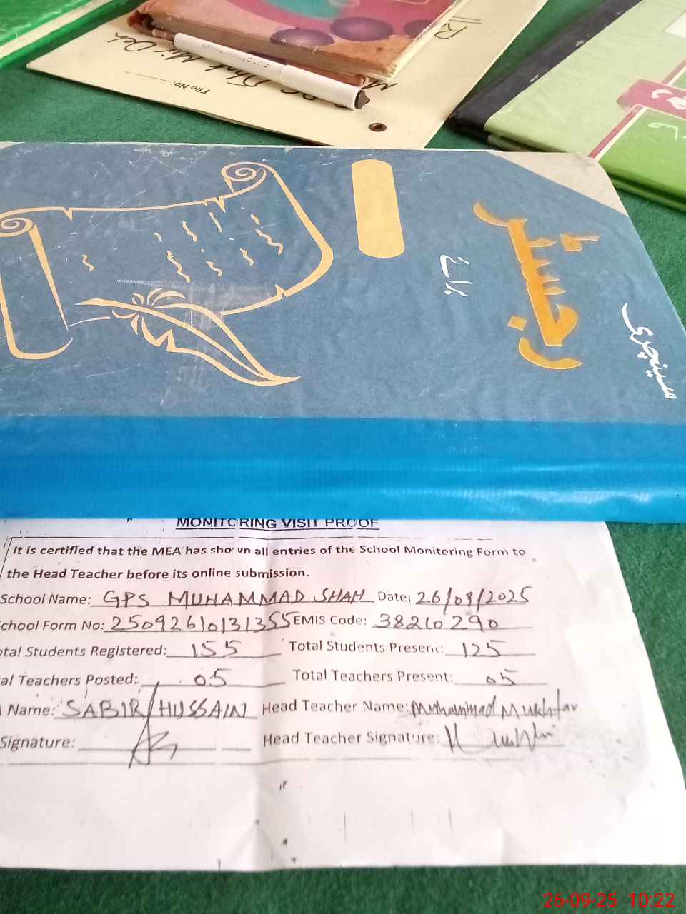| EMIS Code: 38210290 | Name of School: GPS MUHAMMAD SHAH | |||