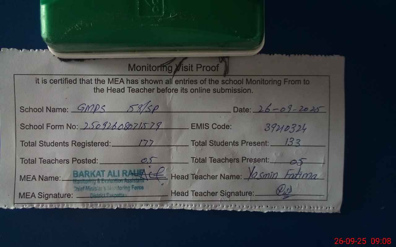 | EMIS Code: 39210324 | Name of School: GMPS 58 SP | |||