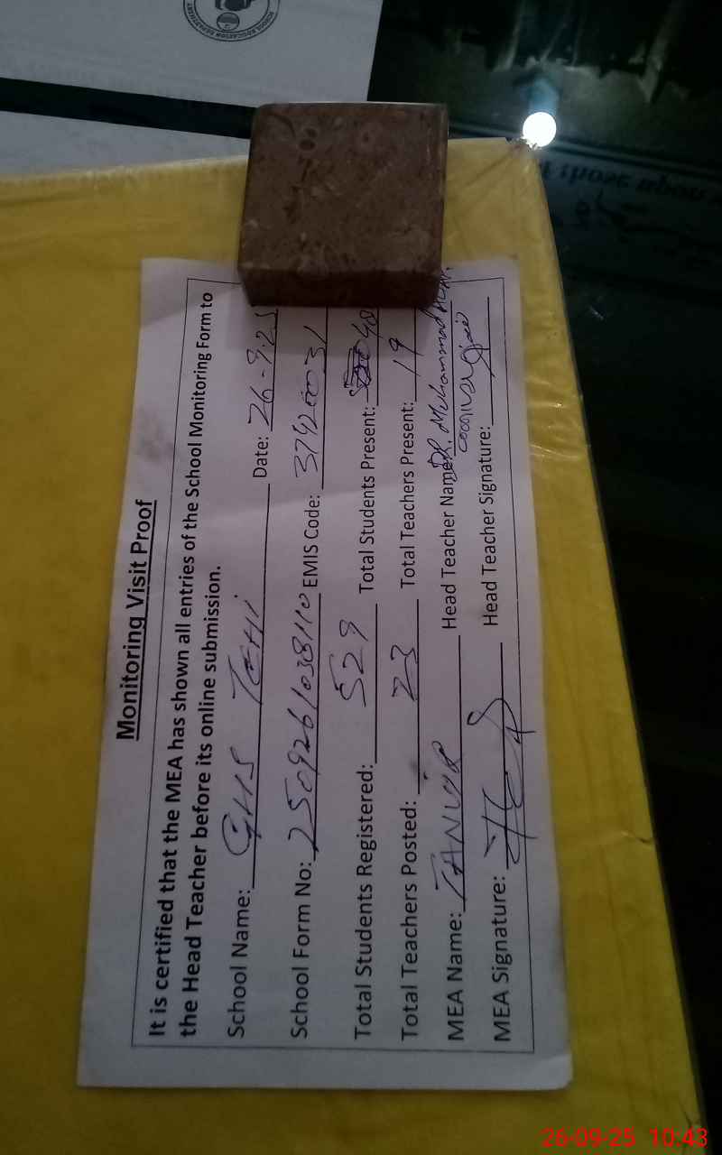 | Certified that this School was Inspected by the Undersigned MEA/DMO Today and the Information Stated Above is as Per Record. | |||||