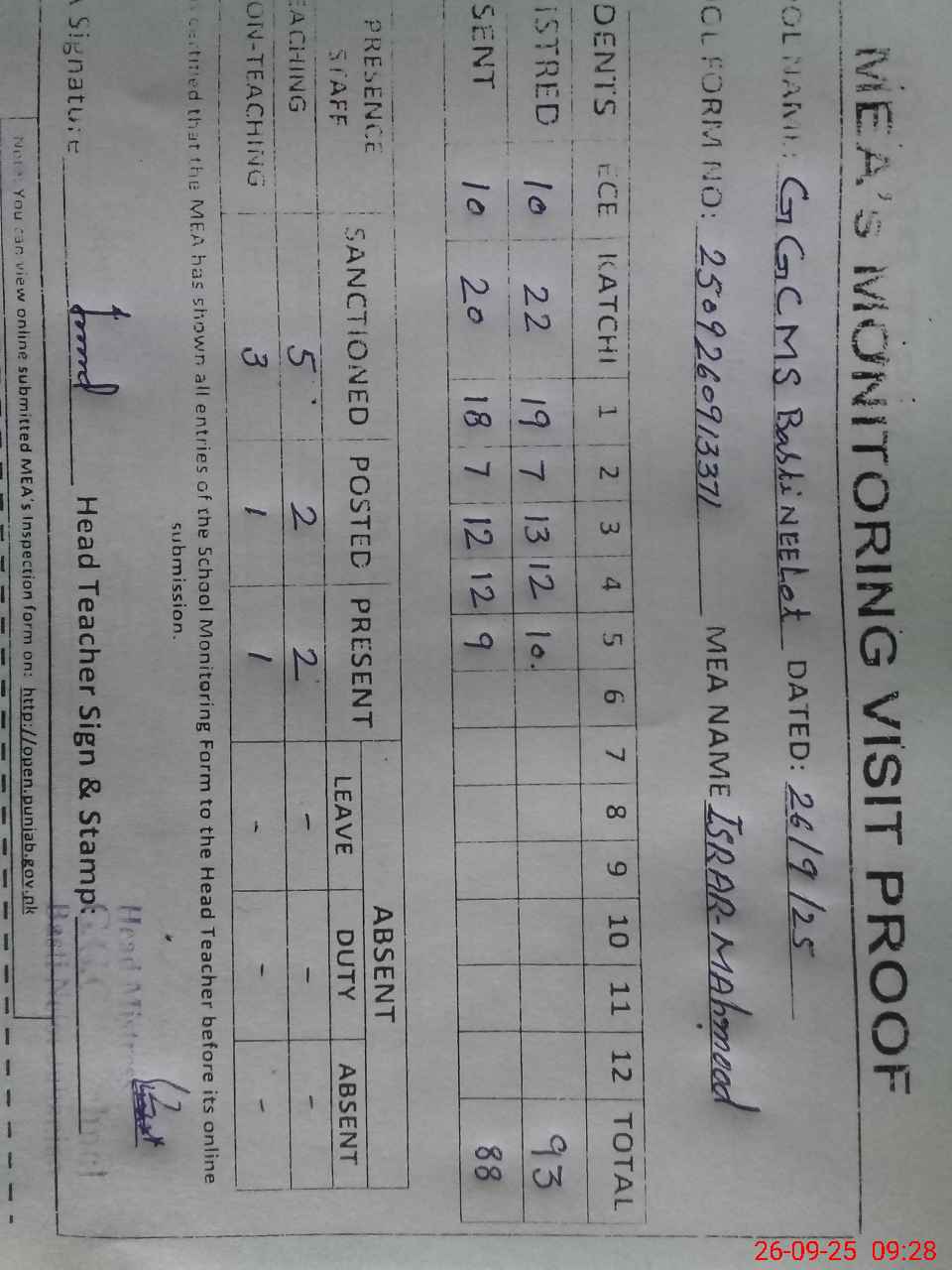 | EMIS Code: 36440550 | Name of School: GGCMS BASTI NEELOT JAHANIAN | |||