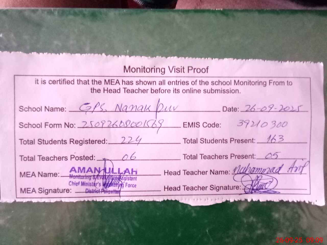 | EMIS Code: 39210300 | Name of School: GES NANAK PUR | |||