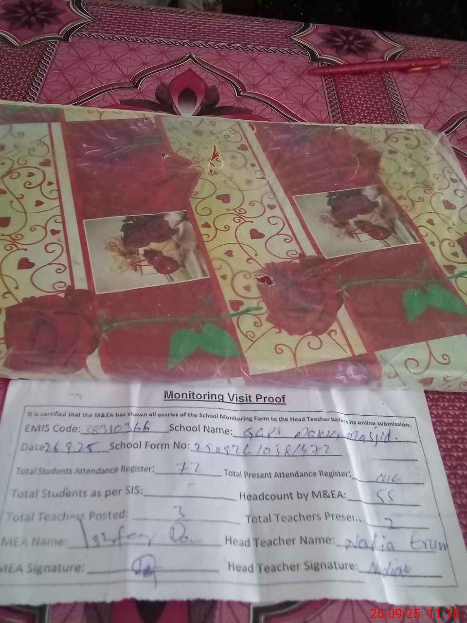 | Attendance Register | Head Teacher | MEA with School | Visit Proof |