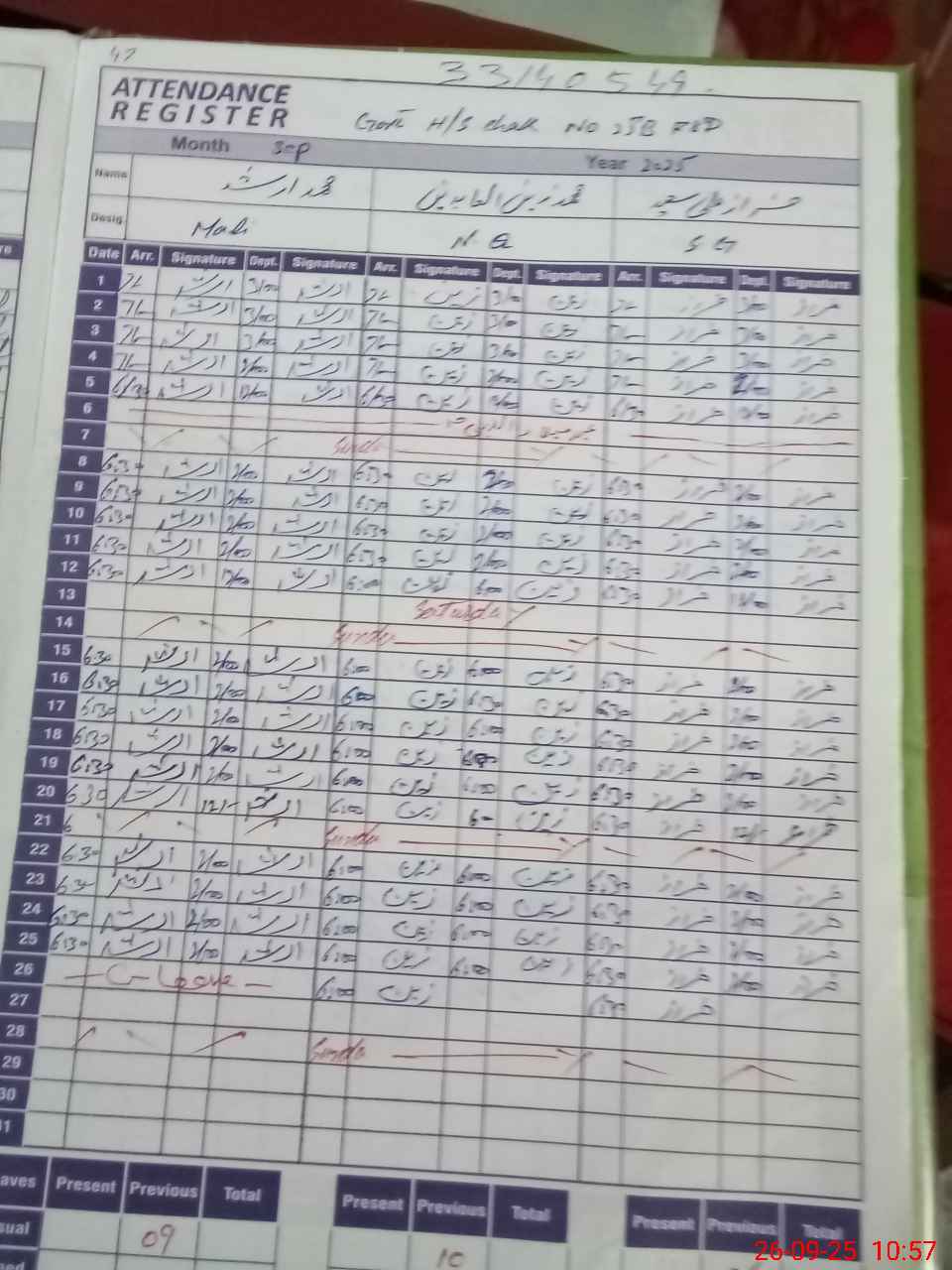 | CNIC | Full Name | Designation | R/C | Absence during last cal. month |