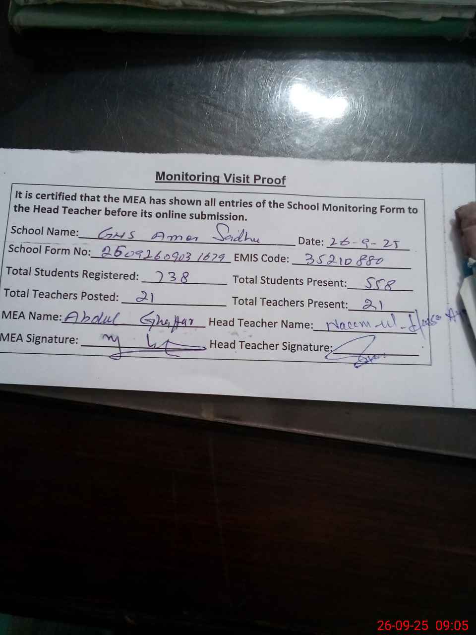 | EMIS Code: 35210880 | Name of School: GHS AMER SIDHU (EX-MCL) | |||