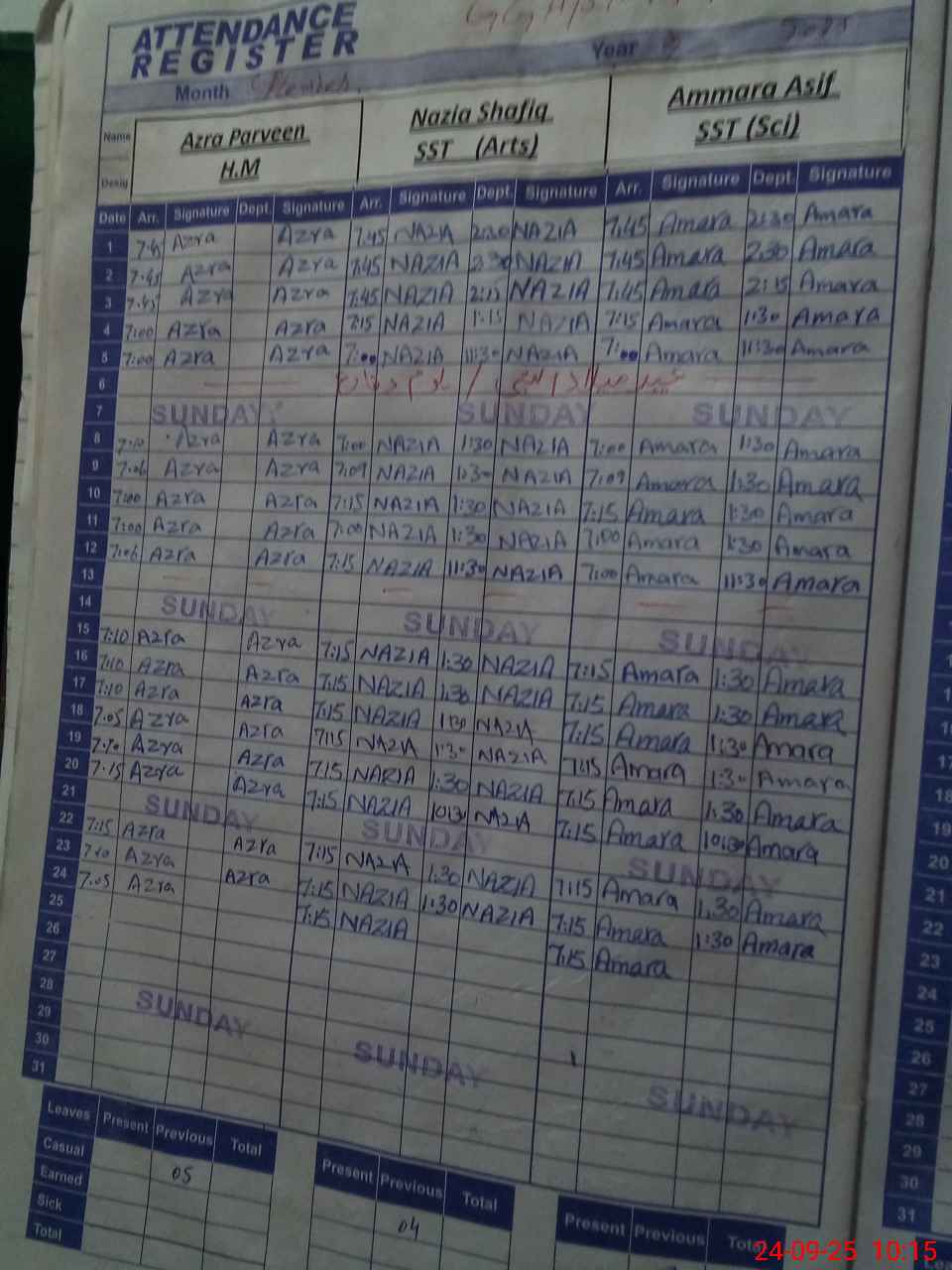 | 38**** | Ki**** Ra**** | PST | Regular | 0 | 0 | 0 | 0 | 0 | 0 | 0 | 0 | 0 | Maternity |