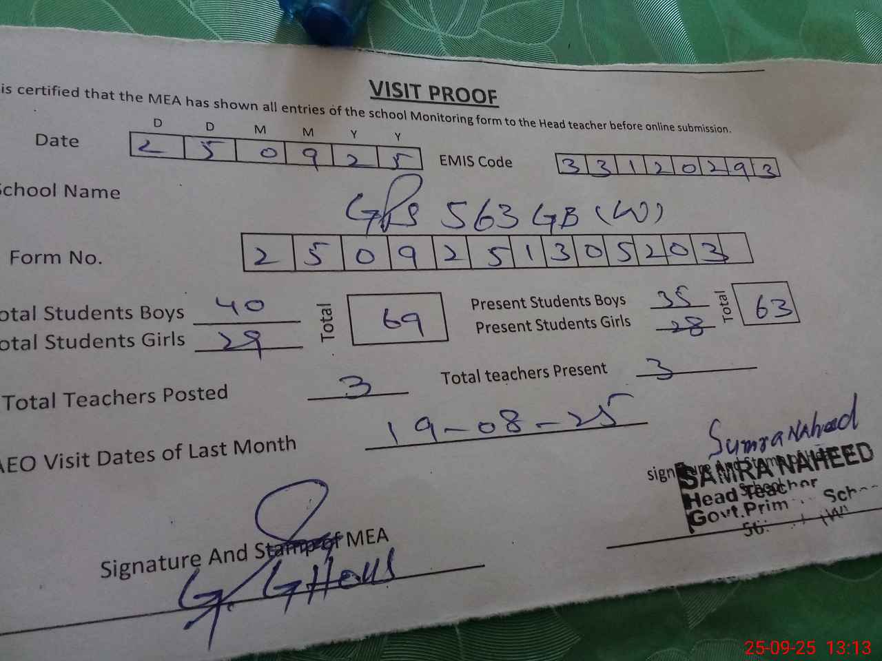 | Certified that this School was Inspected by the Undersigned MEA/DMO Today and the Information Stated Above is as Per Record. | |||||