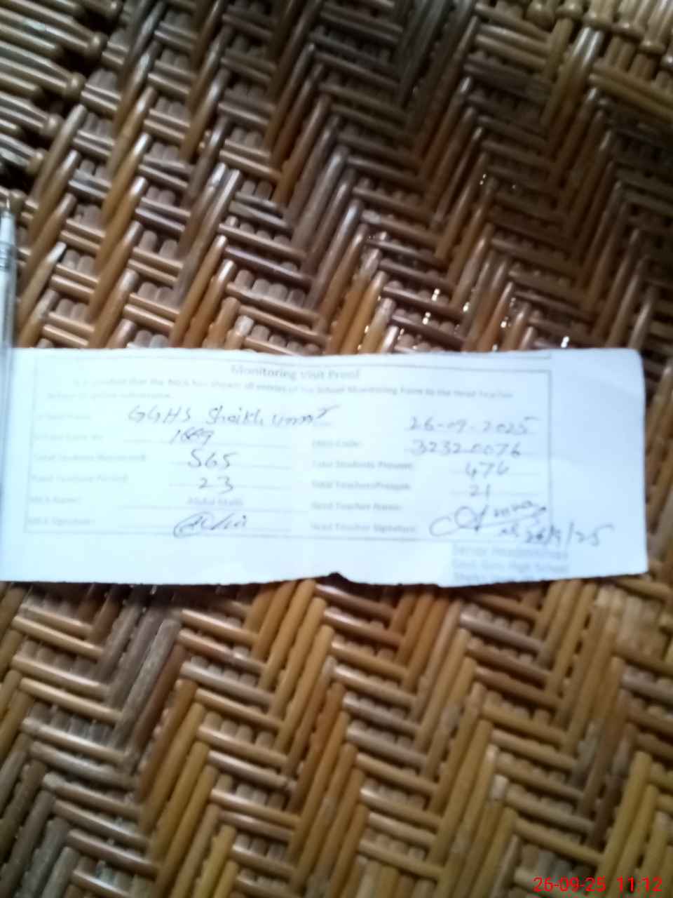 | Attendance Register | Head Teacher | MEA with School | Visit Proof |