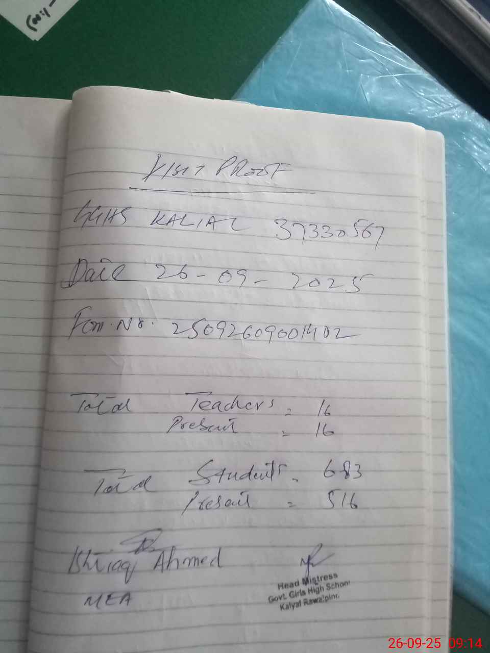 | EMIS Code: 37330567 | Name of School: GGHS KALIAL | |||