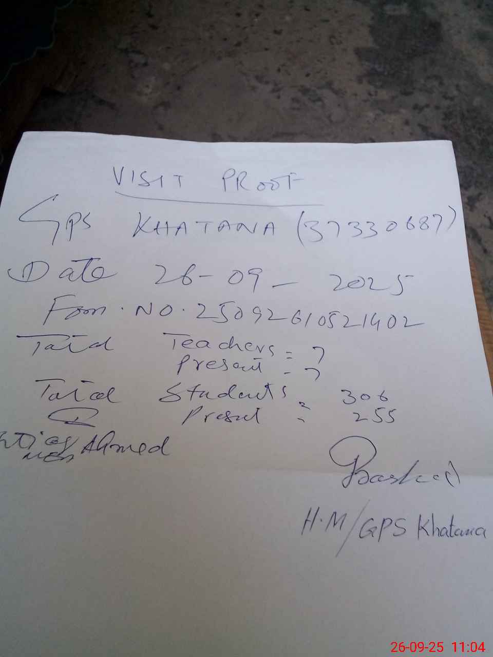 | EMIS Code: 37330687 | Name of School: GPS KHATANA | |||