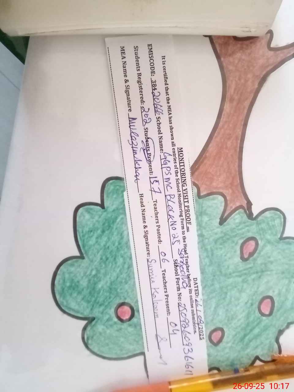 | Attendance Register | Head Teacher | MEA with School | Visit Proof |
