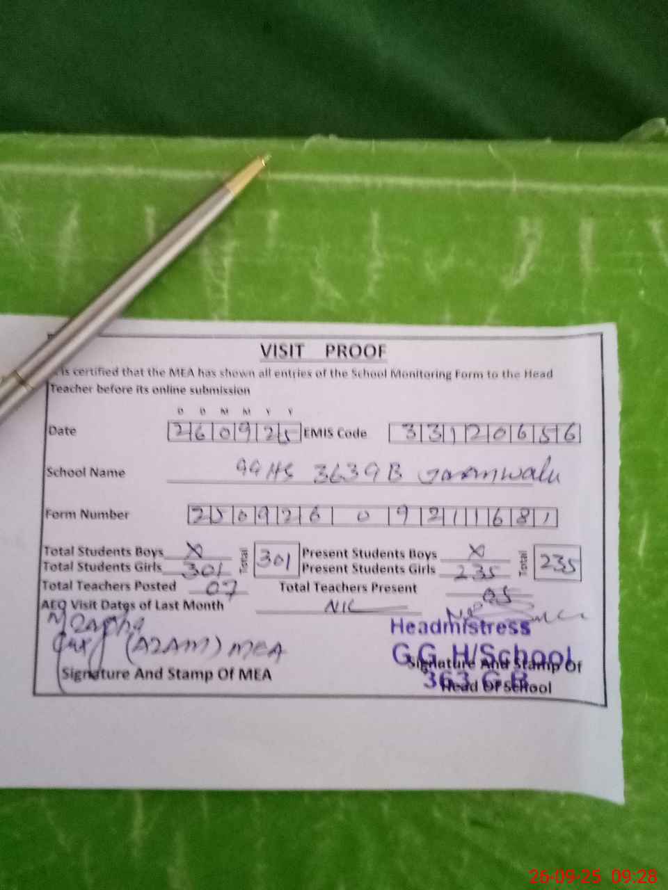 | EMIS Code: 33120656 | Name of School: GGHS CHAK 363 GB SATIANA | |||