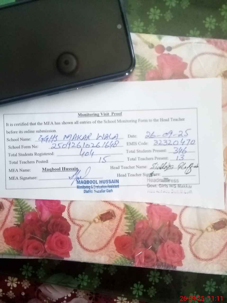 | EMIS Code: 32320470 | Name of School: GGHS MAKKAR WALA | |||