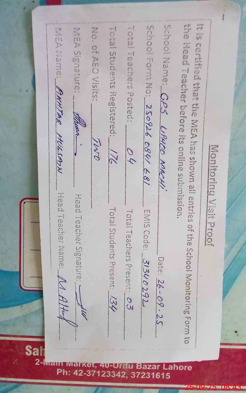 | EMIS Code: 31340292 | Name of School: GPS LIPHOO MACHI | |||
