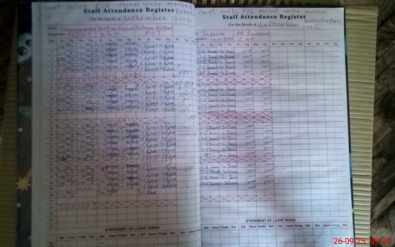 | Attendance Register | Head Teacher | MEA with School | Visit Proof |