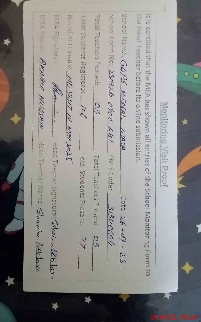 | EMIS Code: 31340604 | Name of School: GGPS MEERAL WASA | |||