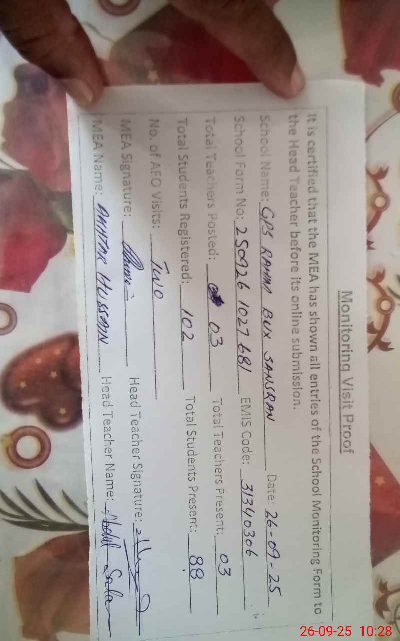 | EMIS Code: 31340306 | Name of School: GPS RAHIM BUX SANSARAIN | |||