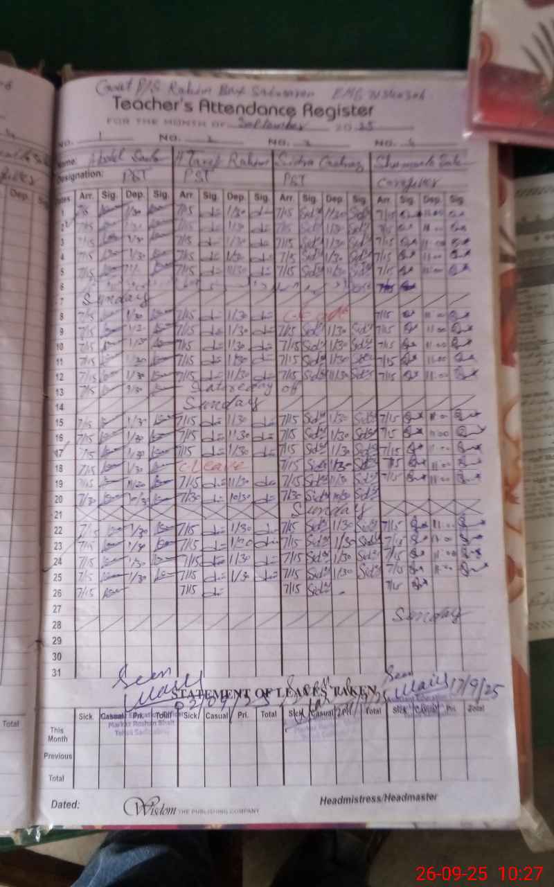 | Name: AB**** SA**** Designation: (School Headmaster's/Headmistress's) PST Phone/Cell Number: 03**** |