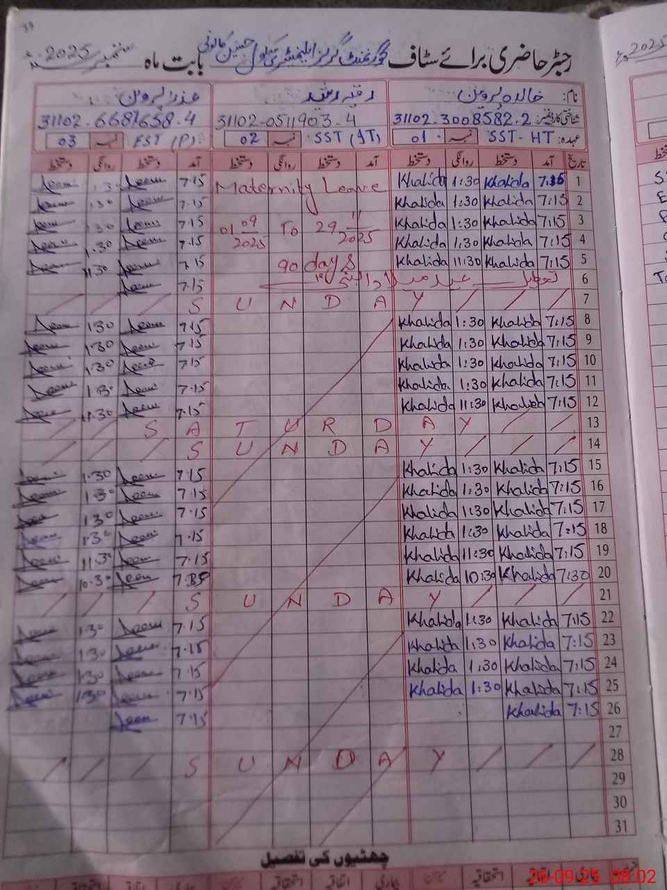 | 31**** | Ro**** Ra**** | SST | Regular | 0 | 0 | 0 | 0 | 0 | 0 | 0 | 0 | 0 | Absent (Un-Authorized) |