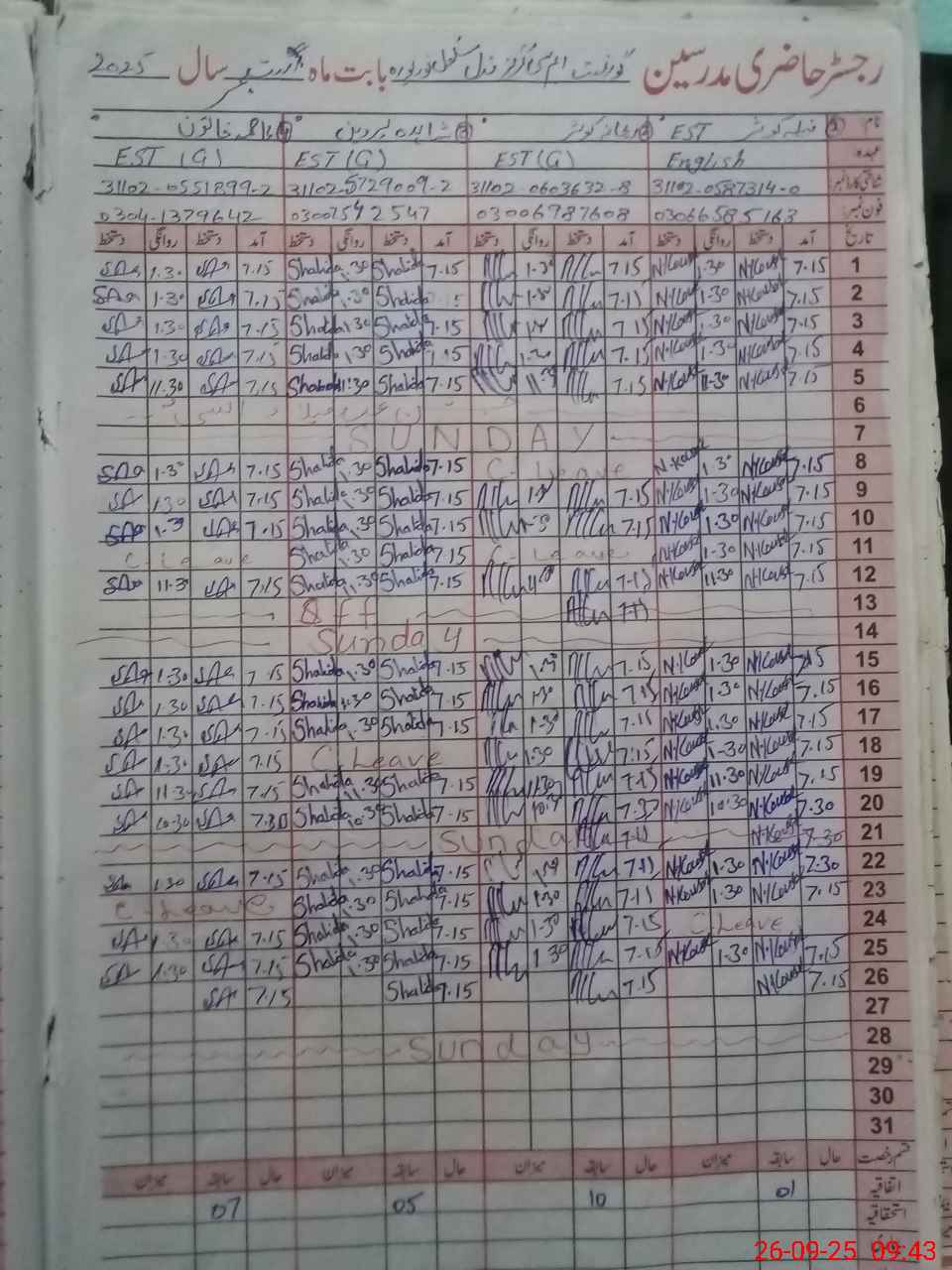 | 31**** | Ba**** Ak**** | PST | Regular | 0 | 0 | 0 | 0 | 0 | 0 | 0 | 0 | 0 | Absent (Un-Authorized) |