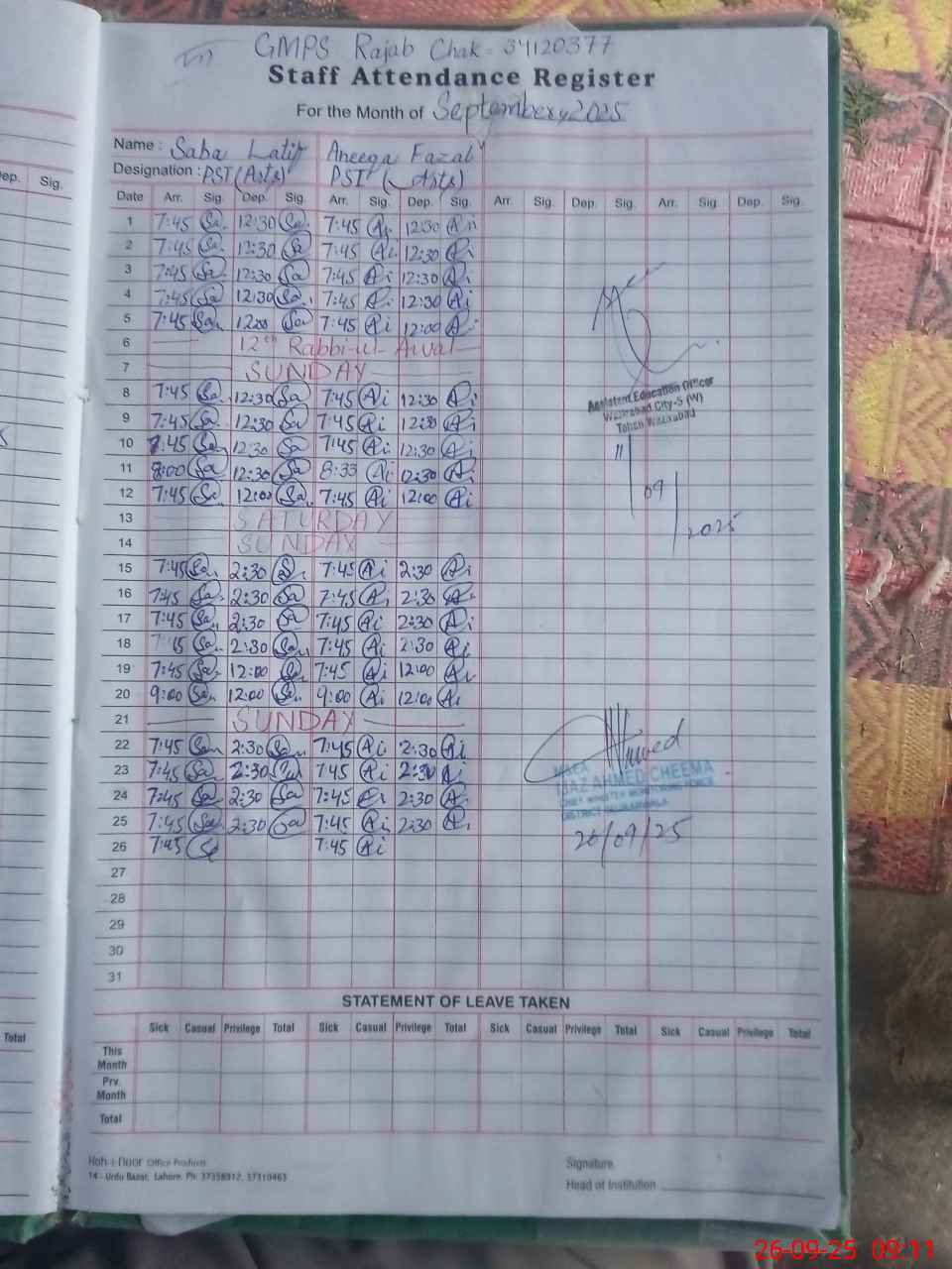 | EMIS Code: 34120377 | Name of School: GMPS RAJAB CHAK | |||