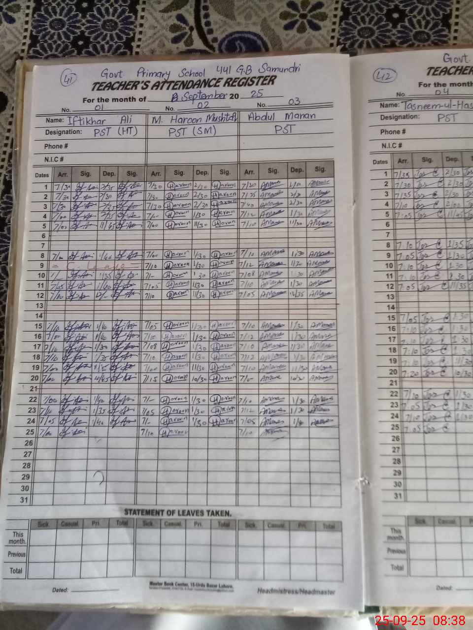 | Name: IF**** AL**** Designation: (School Headmaster's/Headmistress's) PST Phone/Cell Number: 03**** |