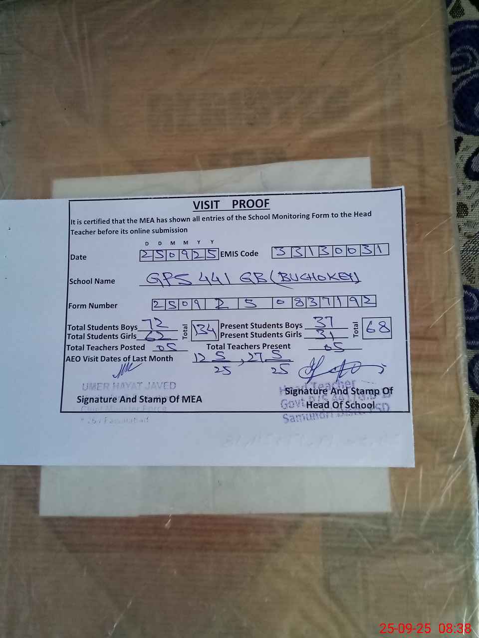 | EMIS Code: 33130031 | Name of School: GPS CHAK 441 GB BUCHOKEY SAMUNDRI | |||