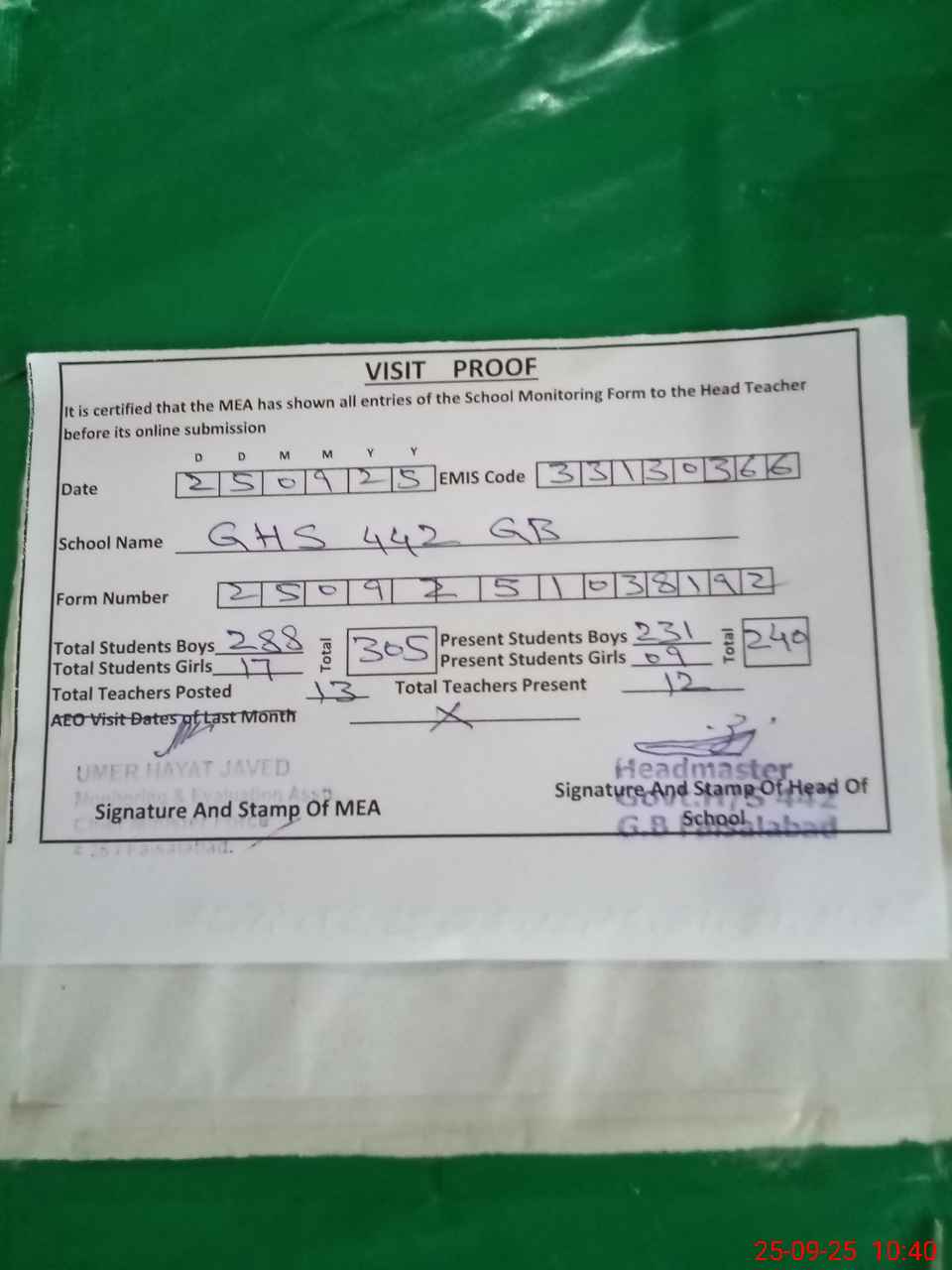 | EMIS Code: 33130366 | Name of School: GHS CHAK 442 GB SAMUNDRI FSD | |||