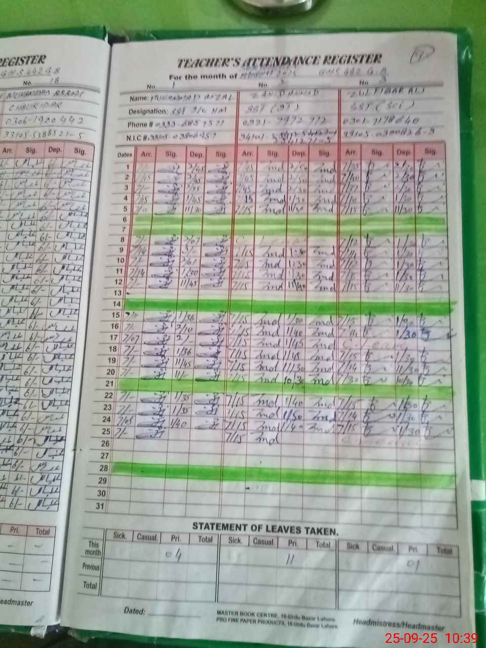 | Name: MU**** AF**** Designation: (School Headmaster's/Headmistress's) SST ( SCIENCE ) Phone/Cell Number: 03**** |