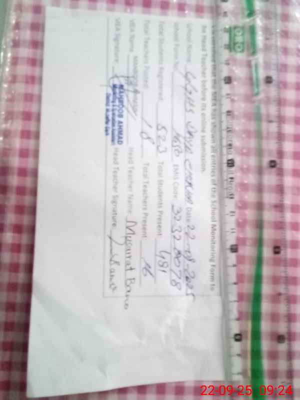 | EMIS Code: 32320078 | Name of School: GGHS DAYA CHOKHA | |||