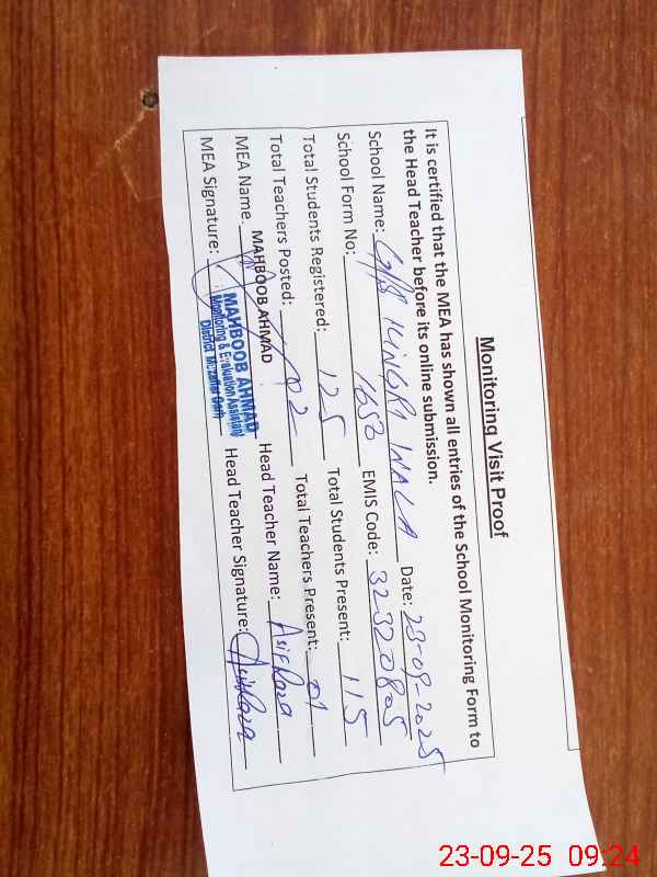 | Certified that this School was Inspected by the Undersigned MEA/DMO Today and the Information Stated Above is as Per Record. | |||||