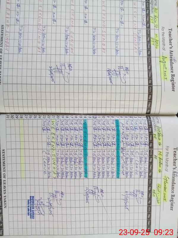 | Attendance Register | Head Teacher | MEA with School | Visit Proof |