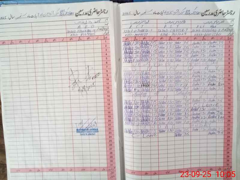 | Name: AN**** AB**** Designation: (School Headmaster's/Headmistress's) ESE Phone/Cell Number: 03**** |