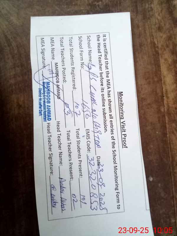 | EMIS Code: 32320853 | Name of School: GPS CHAK NO. 649/TDA | |||