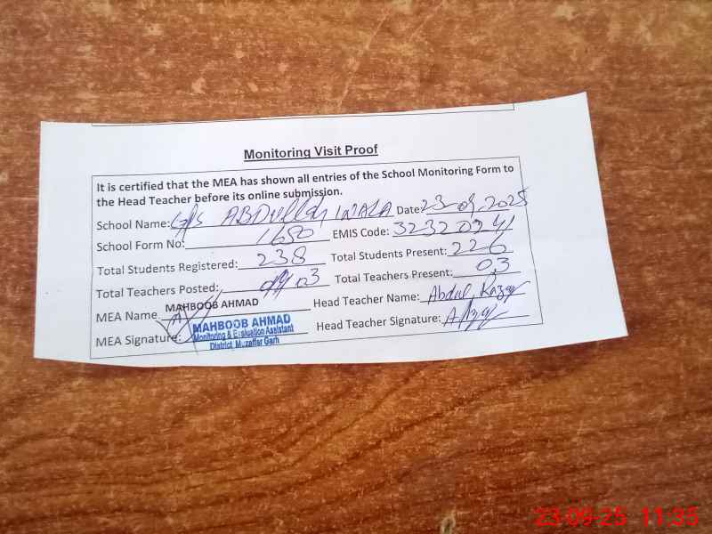 | EMIS Code: 32320241 | Name of School: GPS ABDULLAH WALA | |||