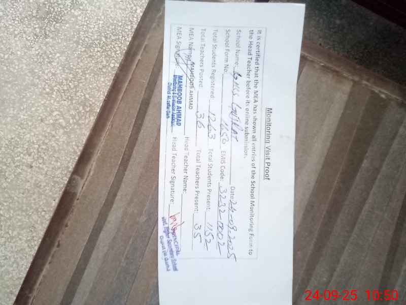 | EMIS Code: 32320002 | Name of School: GHSS GUJRAT | |||