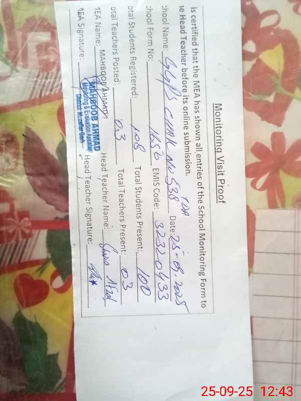 | EMIS Code: 32320433 | Name of School: GGPS CHAK NO. 538 TDA | |||