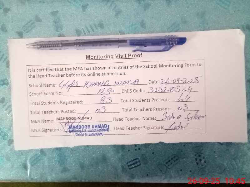 | EMIS Code: 32320524 | Name of School: GGPS KHAND WALA | |||