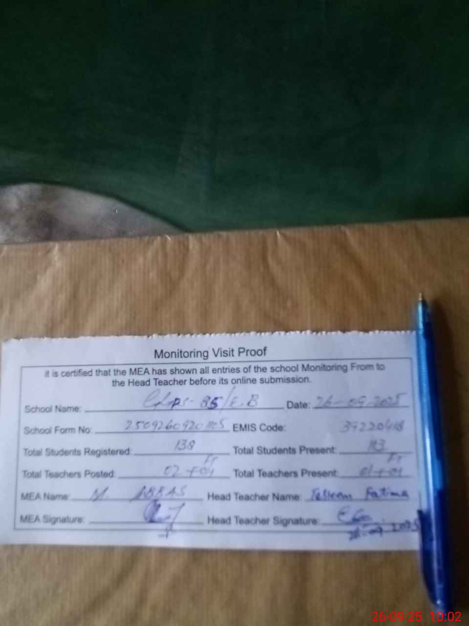 | EMIS Code: 39220418 | Name of School: GGPS 85 EB POST OFFICE QABOOLA | |||