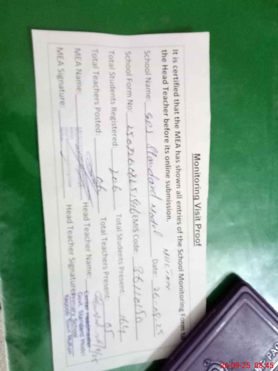 | Certified that this School was Inspected by the Undersigned MEA/DMO Today and the Information Stated Above is as Per Record. | |||||