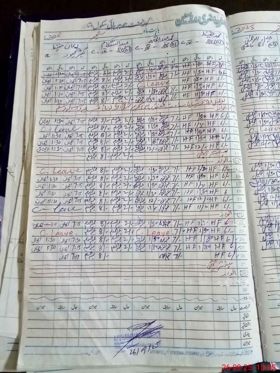 | CNIC | Full Name | Designation | R/C | Absence During Last Calender Month |