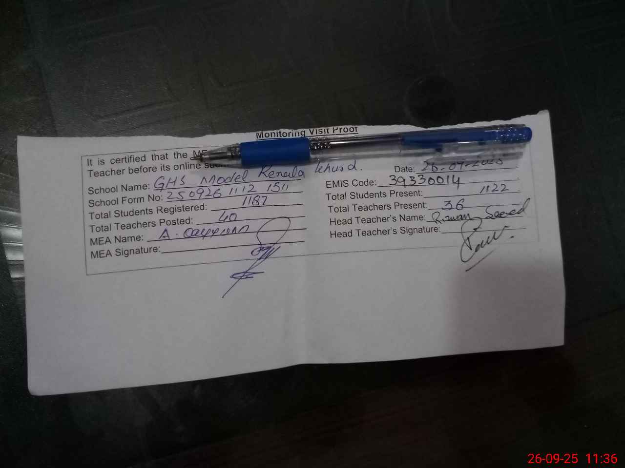 | EMIS Code: 39330014 | Name of School: GHS MODEL RENALA KHURD | |||