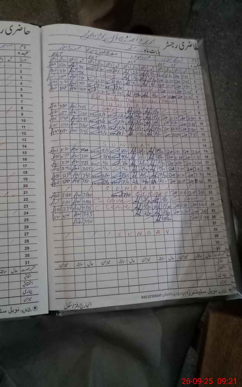 | 33**** | Sa**** Ba**** | 1 | 0 | 30 | 0 | 0 | 0 | 0 | 0 | 0 | 0 | Absent (Un-Authorized) | |