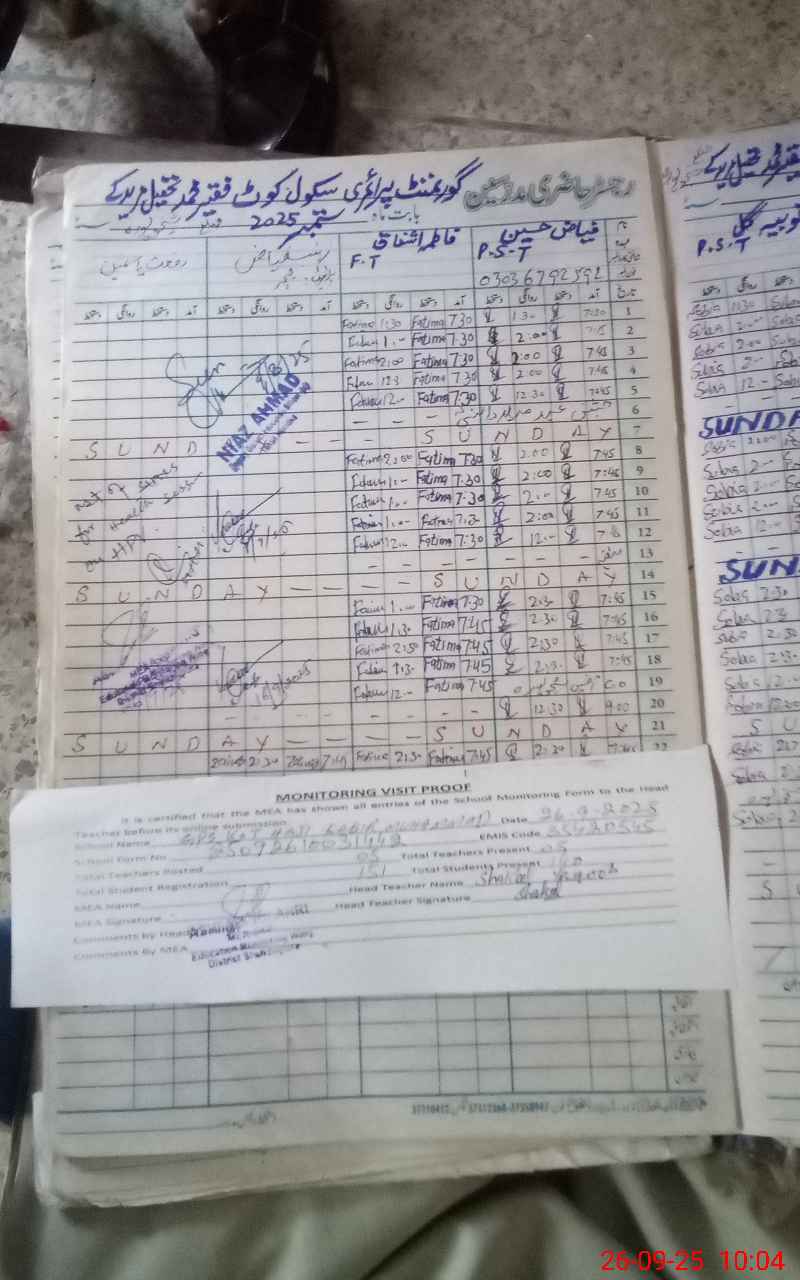 | EMIS Code: 35420545 | Name of School: GPS KOT HAJI FAQIR MUHAMMAD | |||
