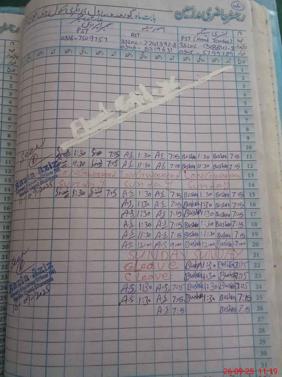 | Name: Bu**** Be**** Designation: (School Headmaster's/Headmistress's) PST Phone/Cell Number: 03**** |